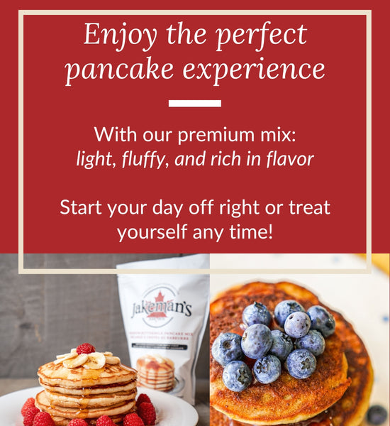 Pair your pancakes with Jakeman’s 100% pure maple syrup for a breakfast that’ll delight the whole family! Jakeman's Premium Buttermilk Pancake Mix offers a quick, easy, and delicious way to start your day. Light, fluffy, and irresistibly rich, these pancakes are perfect for those mornings when you need something special in no time.